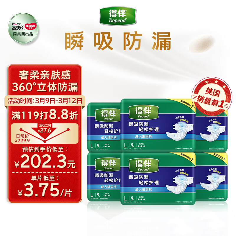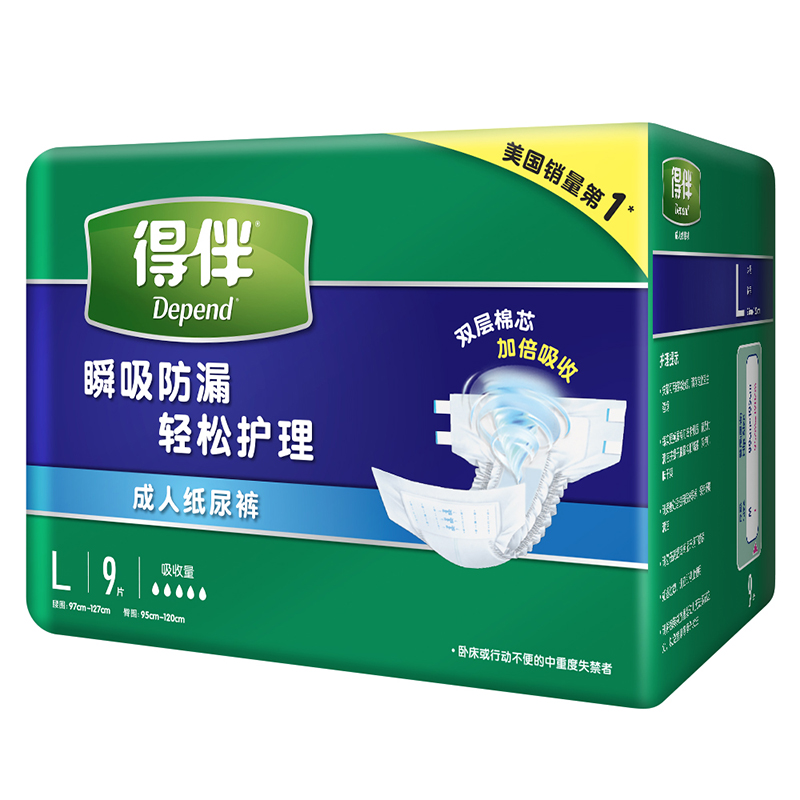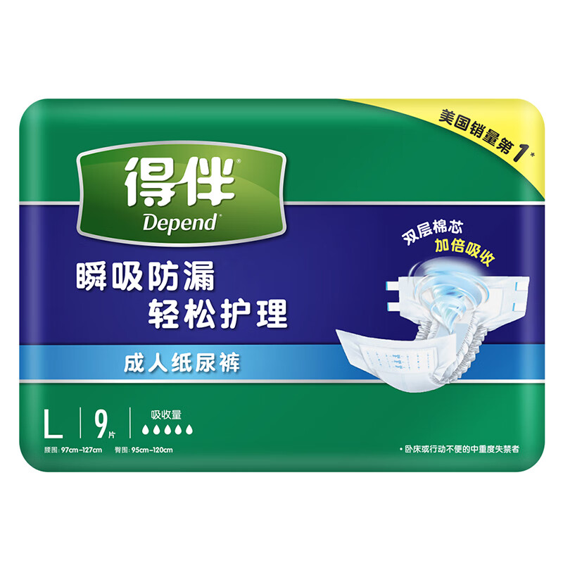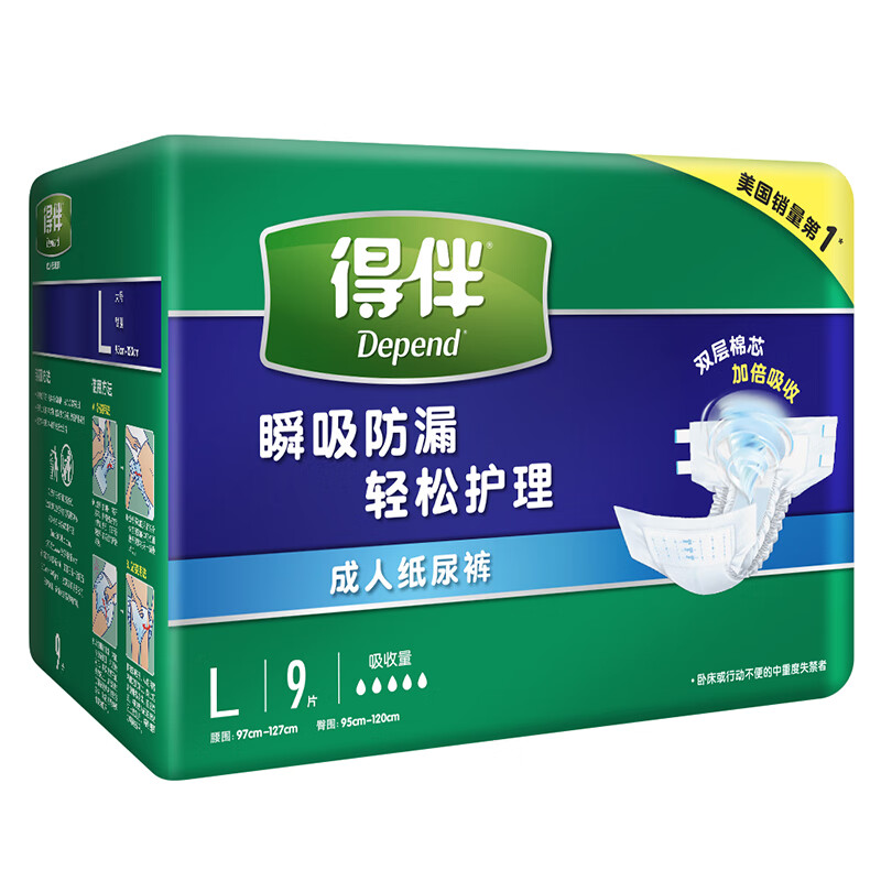 得伴Depend老年人尿不湿男女成人纸尿裤臀围病人尿布95-120cm L54片价格:229.90元!