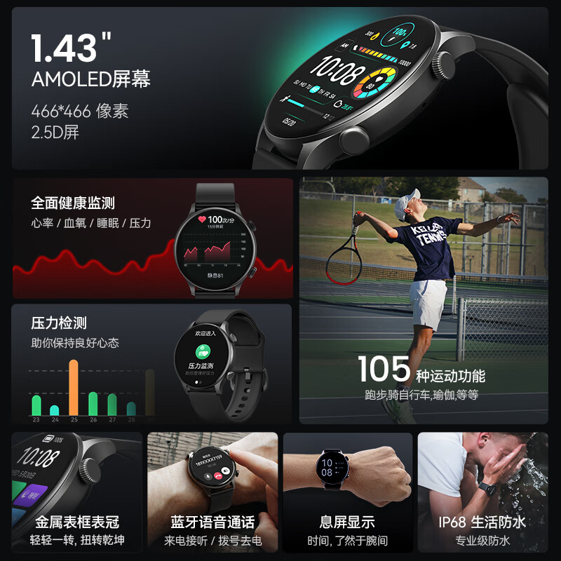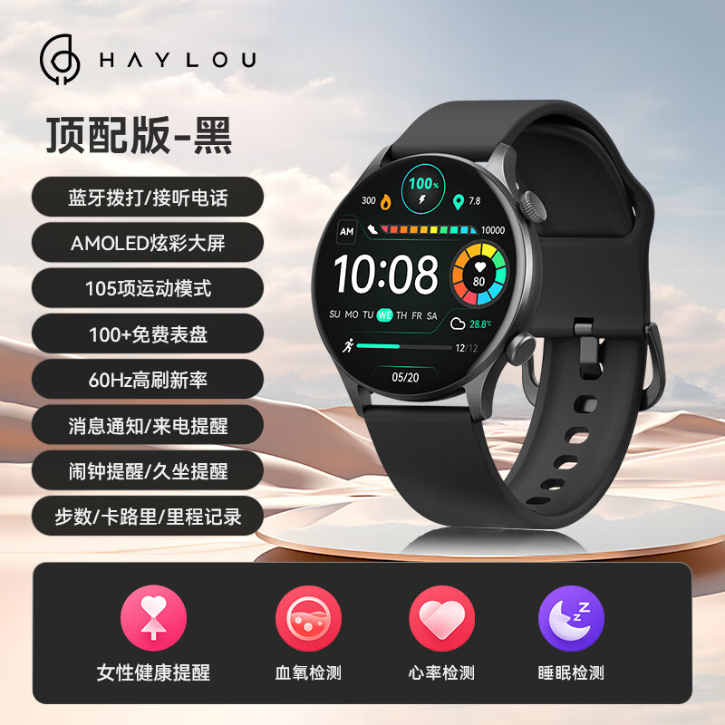嘿喽(Haylou)Solar Plus智能手表 户外运动手表 蓝牙通话 105种运动模式 心率血氧检测 IP68级防水价格:269.00元!