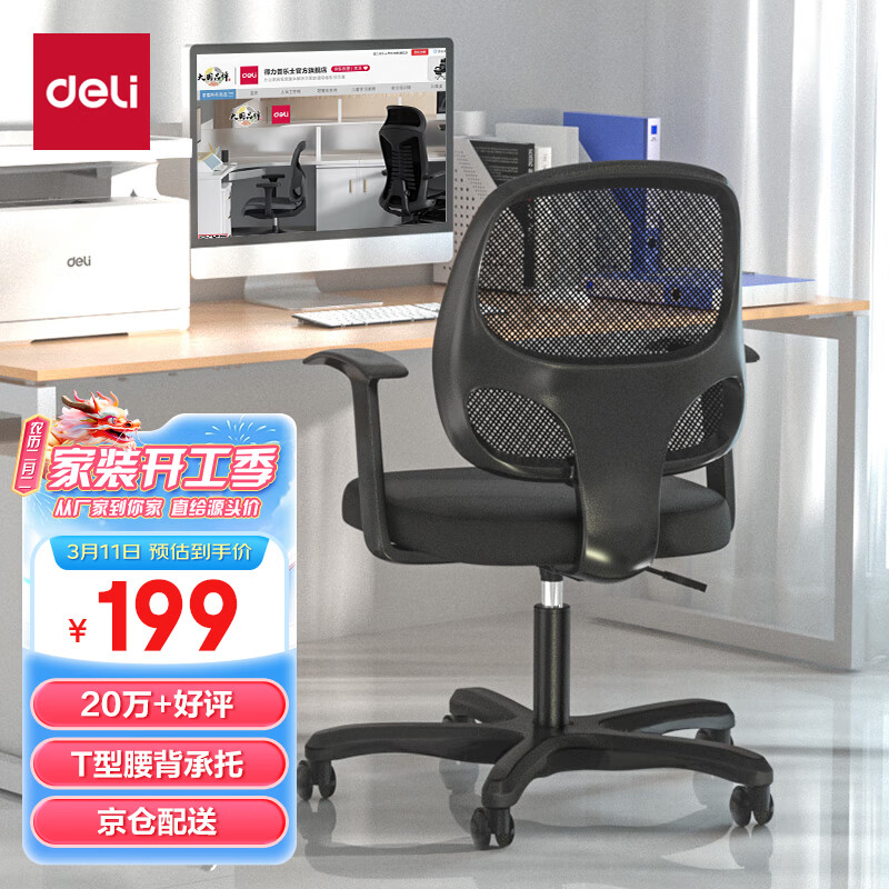 得力(deli)4900 人体工学靠背办公椅/电脑椅/职员椅 家用网布可升降转椅价格:199.00元!