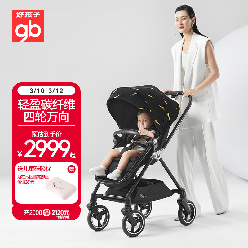 好孩子(gb)婴儿车可坐可躺双向轻便高景观碳纤维婴儿推车360度轻奢天鹅金羽价格:3649.00元!