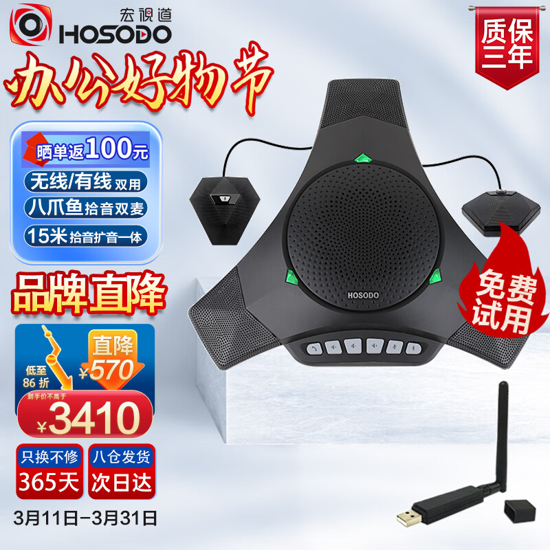 宏视道视频会议无线2.4G全向麦克风MC810W-EX(无线USB免驱+一拖二扩展联)适合20-80㎡会议室价格:3980.00元!
