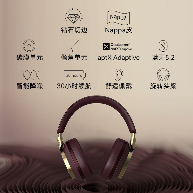 宝华韦健(B&W) Px8 皇家勃艮第 旗舰无线hifi头戴式蓝牙耳机 Bowers&Wilkins智能主动降噪高保真音乐耳麦价格:5589.00元!