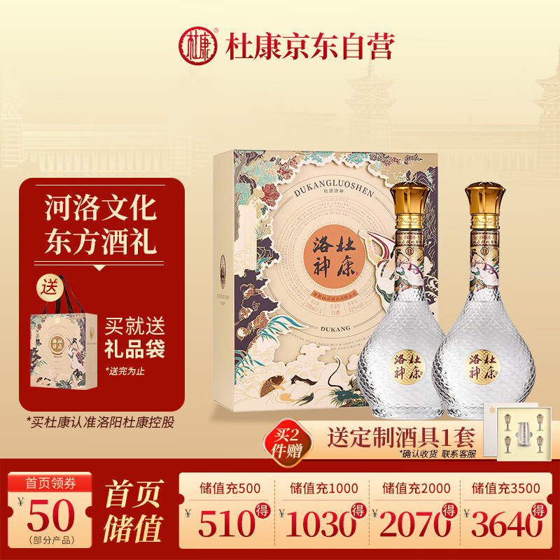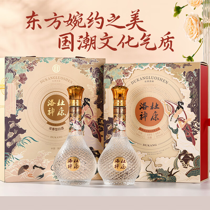 杜康洛神浓香型高度白酒52度500ml*2瓶 双支礼盒【自饮送礼河南特产】价格:288.00元!