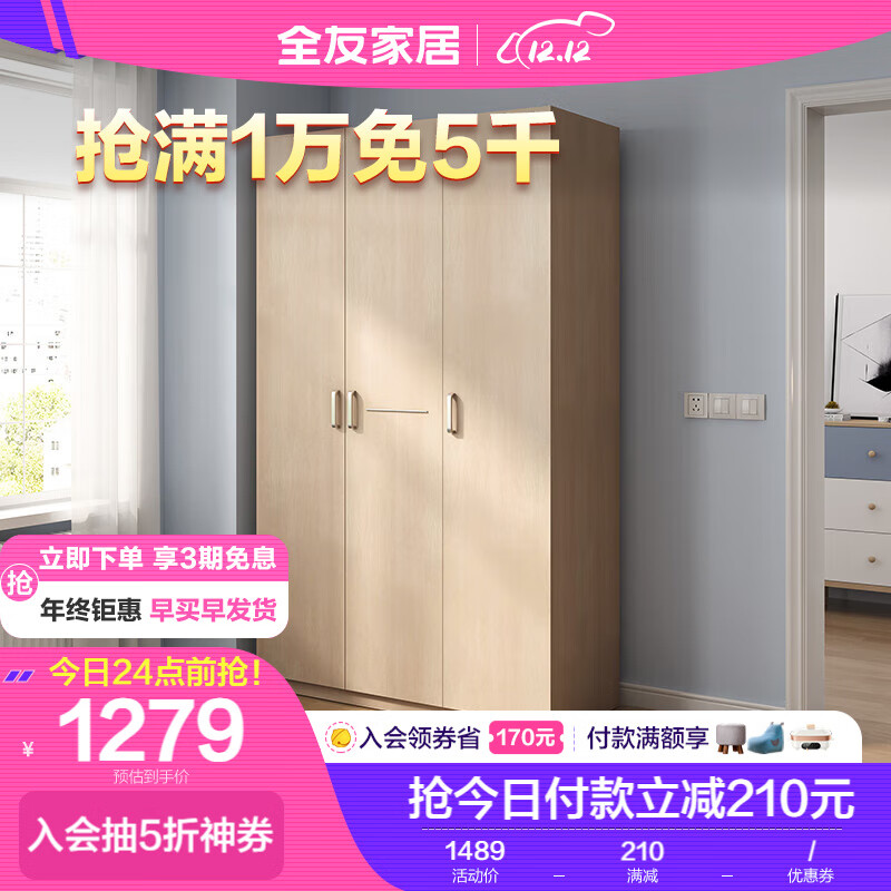 全友家居 衣柜自然原木风木纹衣柜多规格组合卧室储物柜子106302价格:1489.00元!