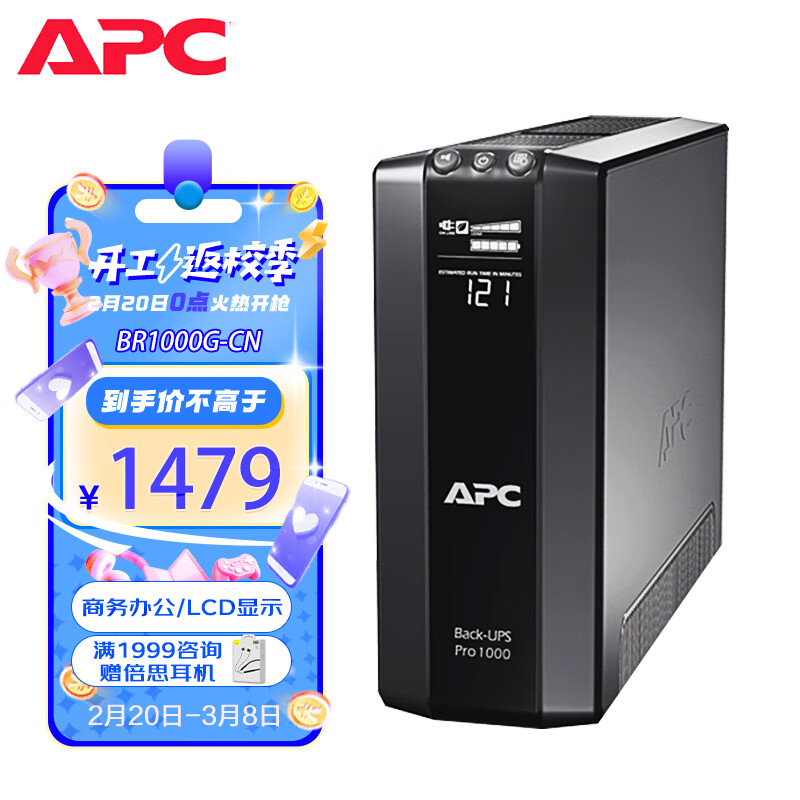 APC施耐德ups不间断电源BR1000G-CN 600W/1KVA nas电脑网络设备商务办公停电稳压应急备用ups电源价格:1479.00元!