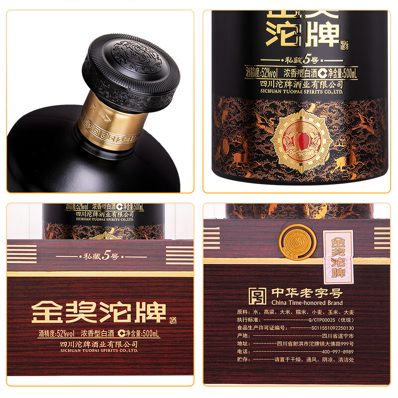 沱牌舍得 金奖沱牌私藏5号 52度浓香型白酒500ml*6瓶整箱 年货送礼价格:468.00元!
