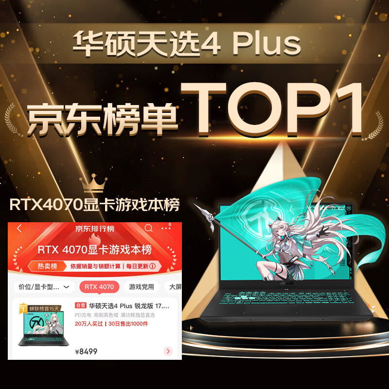 华硕天选4 Plus 锐龙版 17.3英寸高性能游戏本 笔记本电脑(新R9-7940H 16G 1T RTX4070 360Hz高刷高色域电竞屏)灰价格:8499.00元!