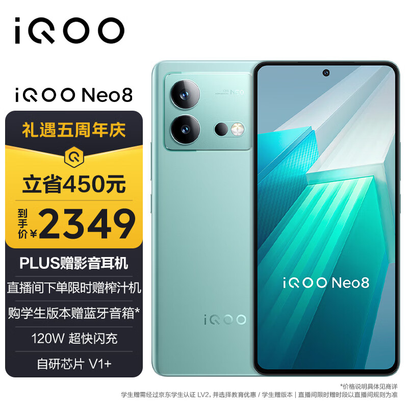 vivo iQOO Neo8 16GB+512GB 冲浪 代骁龙8+ 自研芯片V1+ 120W超快闪充 5G游戏电竞性能手机价格:2799.00元!