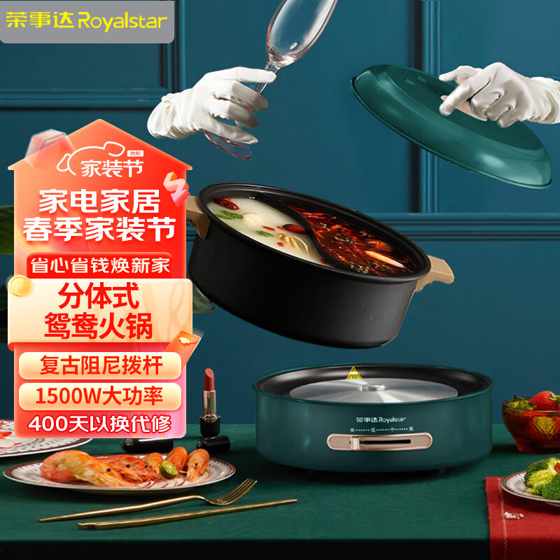 荣事达(Royalstar) 电火锅 分体鸳鸯锅 家用电火锅 多功能电热锅电煮锅电炒锅5L涮锅大容量RHG-50FY价格:199.00元!