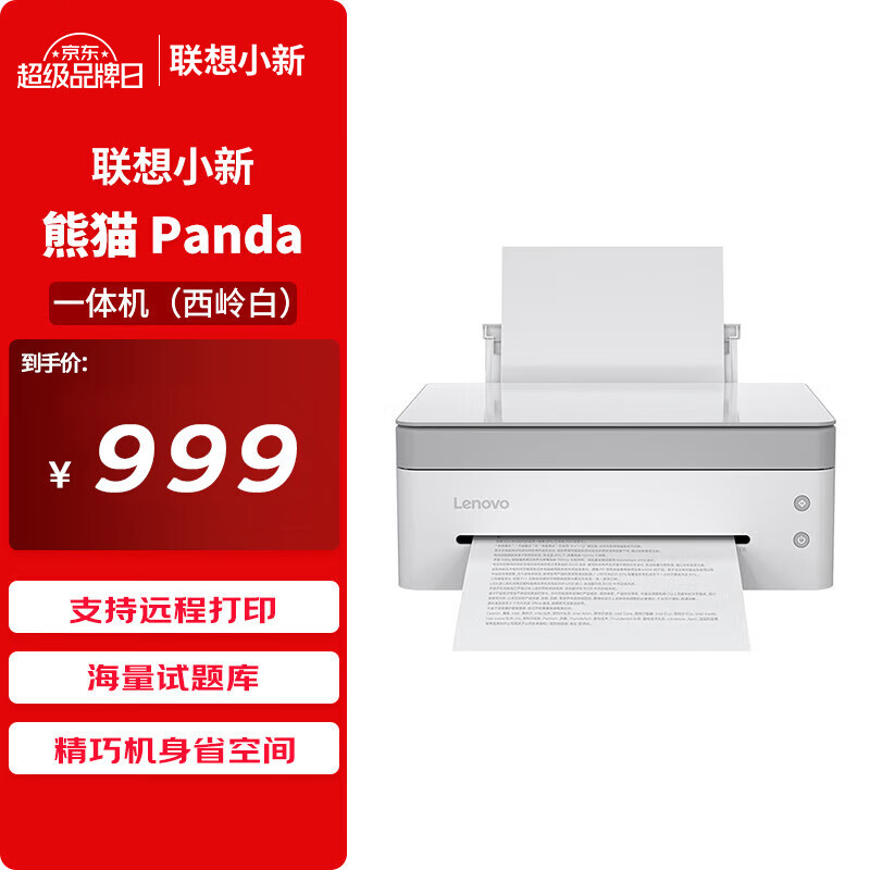 联想小新熊猫Panda打印机 学生家用办公商用 黑白激光高速打印/云打印/扫描/复印一体机 西岭白价格:999.00元!