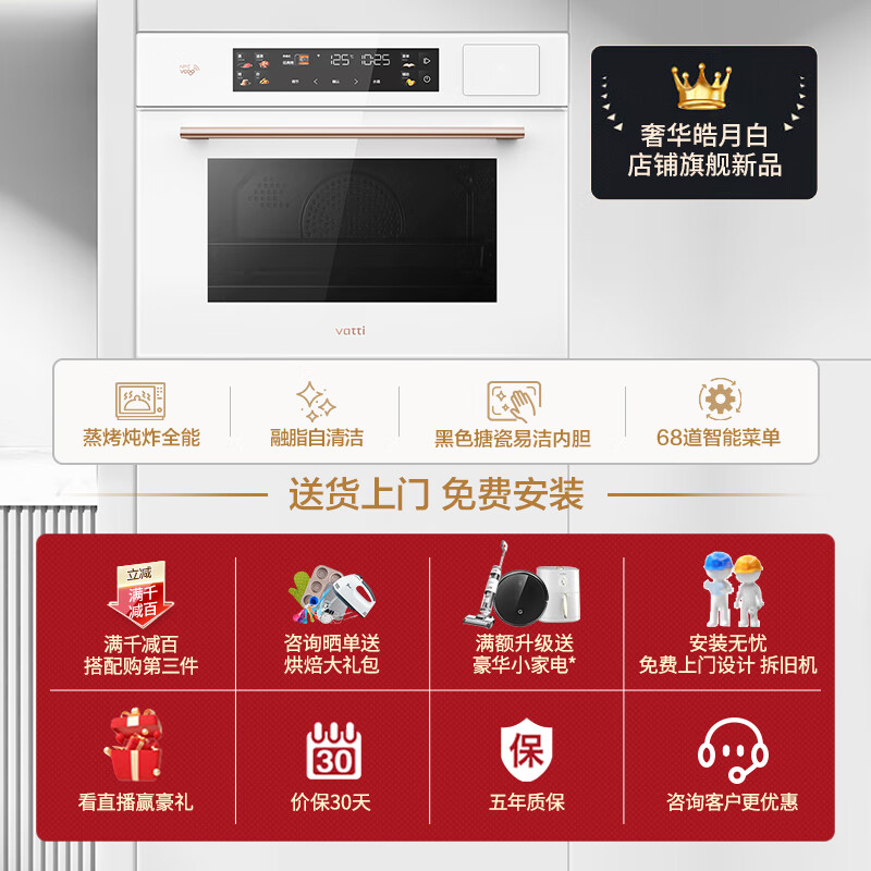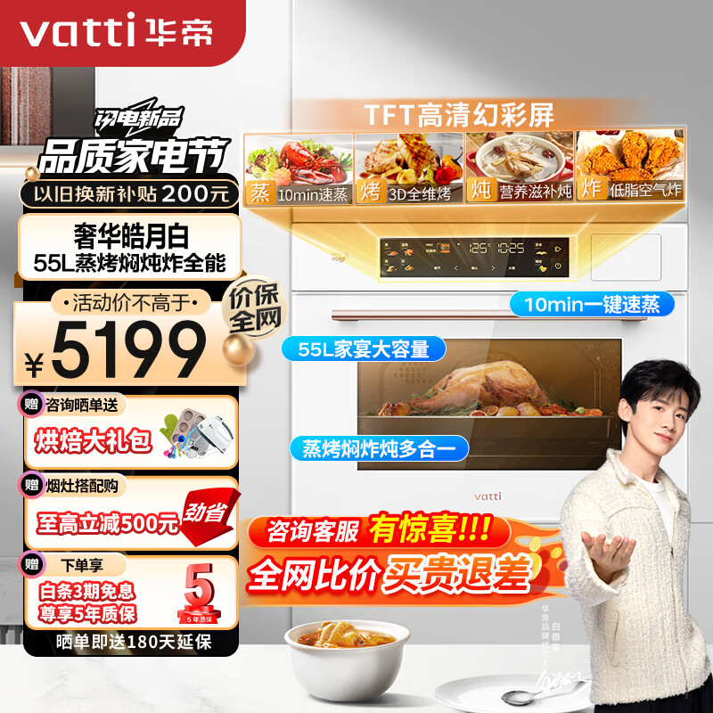 华帝(VATTI)蒸烤箱一体机白色蒸烤机蒸烤炖炸四合一嵌入式55L一键速蒸搪瓷内胆?家用蒸箱烤箱 JFQ-i23031价格:5199.00元!