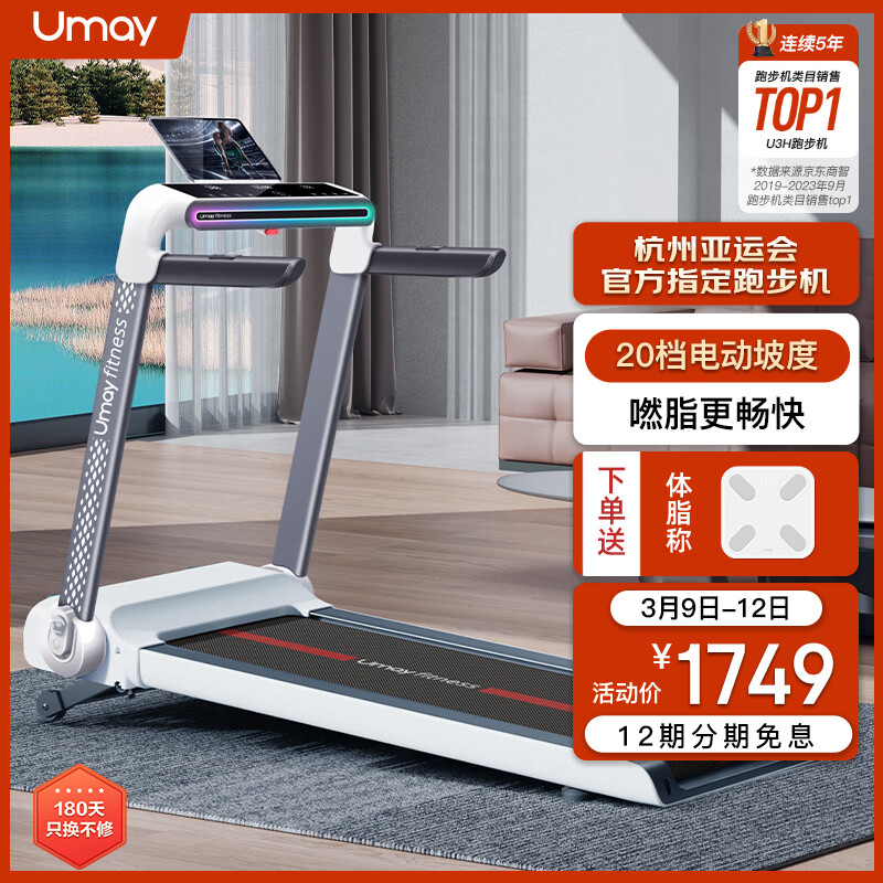 佑美U3H 电动坡度版跑步机家用降噪可折叠走步机免安装直播互联价格:1749.00元!