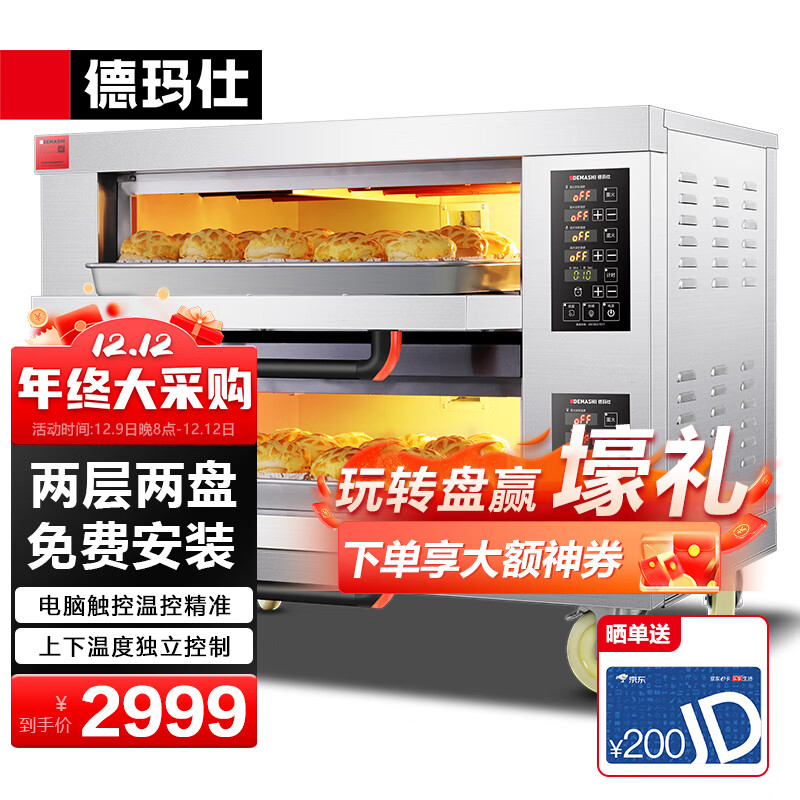 德玛仕(DEMASHI)大型烘焙烤箱商用 烤鸡烤鸡翅披萨面包蛋糕地瓜烧饼商用电烤箱 两层两盘(220V电压)价格:2999.00元!