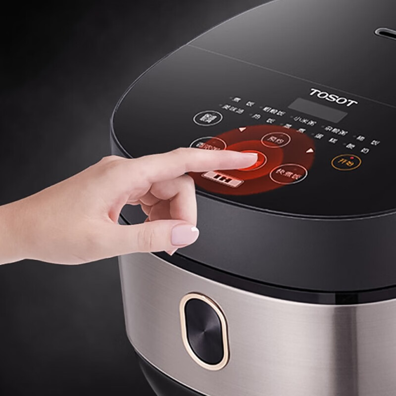 3、外形外观很好看,很高大上。内胆容量可以,一家几口人吃饭没问题。功能设置也合适,常用的都有。操作很智能,看着按键操作就行。方便。煮饭效果可以。这个还能煮低糖饭。很扎实,应该能用很久。好评好评