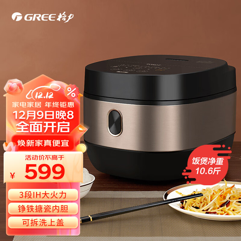 大松 TOSOT 格力电饭煲3-4-5人电饭锅IH柴火饭 2段电磁加热智能 家用多功能 易清洗Ih电饭煲GDCF-4011C价格:589.00元!