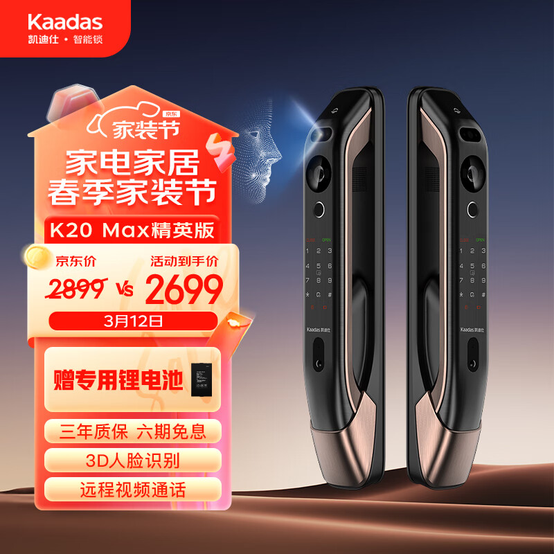 凯迪仕(kaadas)人脸智能监控全自动智能门锁 K20 Max精英版指纹锁 密码锁 红古铜价格:2699.00元!