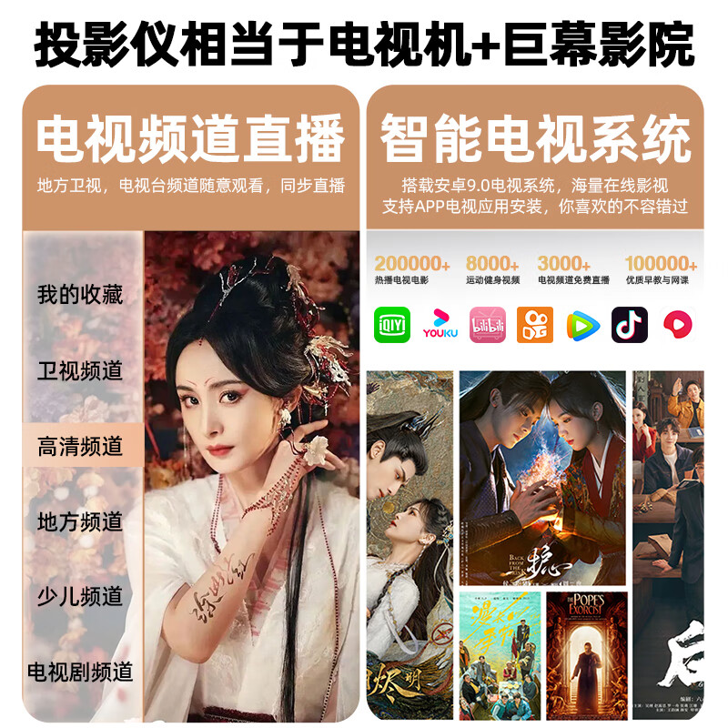 欢乐投 投影仪家用家庭影院超高清白天手机电脑便携3d投影办公卧室客厅小型一体机电视价格:399.00元!