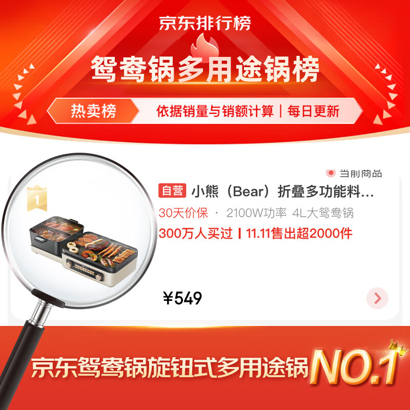 3、这款小熊折叠多功能锅,也太实用了!让我实现了火锅、烤肉双向奔赴!不得不说它家的产品颜值都很高啊!39mm大烤盘和4L鸳鸯火锅的超大容量,满足多人聚餐,双分区独立控温,2100W大功率,连续烤1小时也不断电,而且它的烤盘可以拿下来清洗,折叠起来也不占地方!有问题都及时处理??,趁着活动入手划算,发货快,隔天都到了,包装得好,非常不错,火锅+烤肉双倍快乐,赞赞赞!