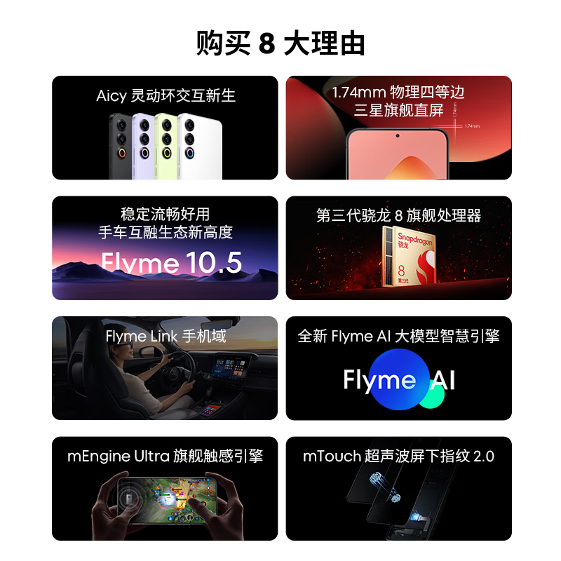 魅族(MEIZU)21 8GB+256GB 灵动紫 1.74mm极窄四等边直屏 骁龙8Gen3 2亿像素 80W超充 5G游戏学生拍照手机价格:3199.00元!