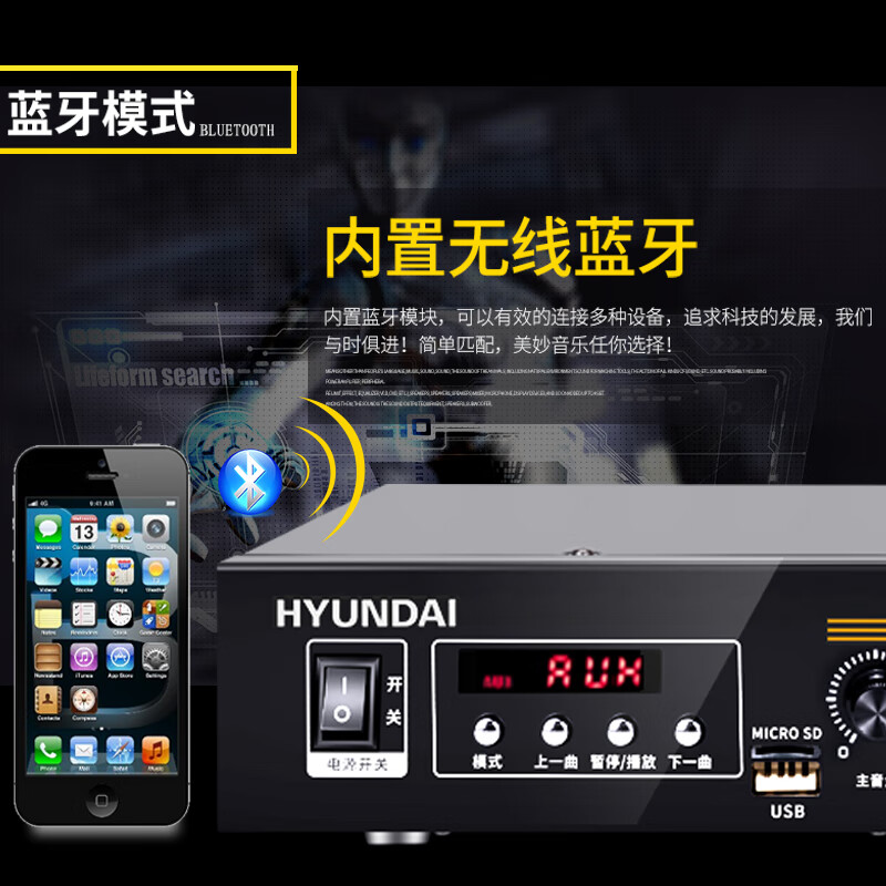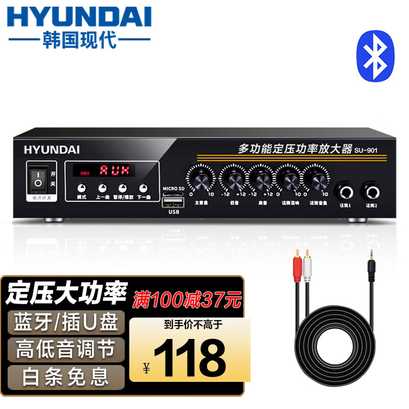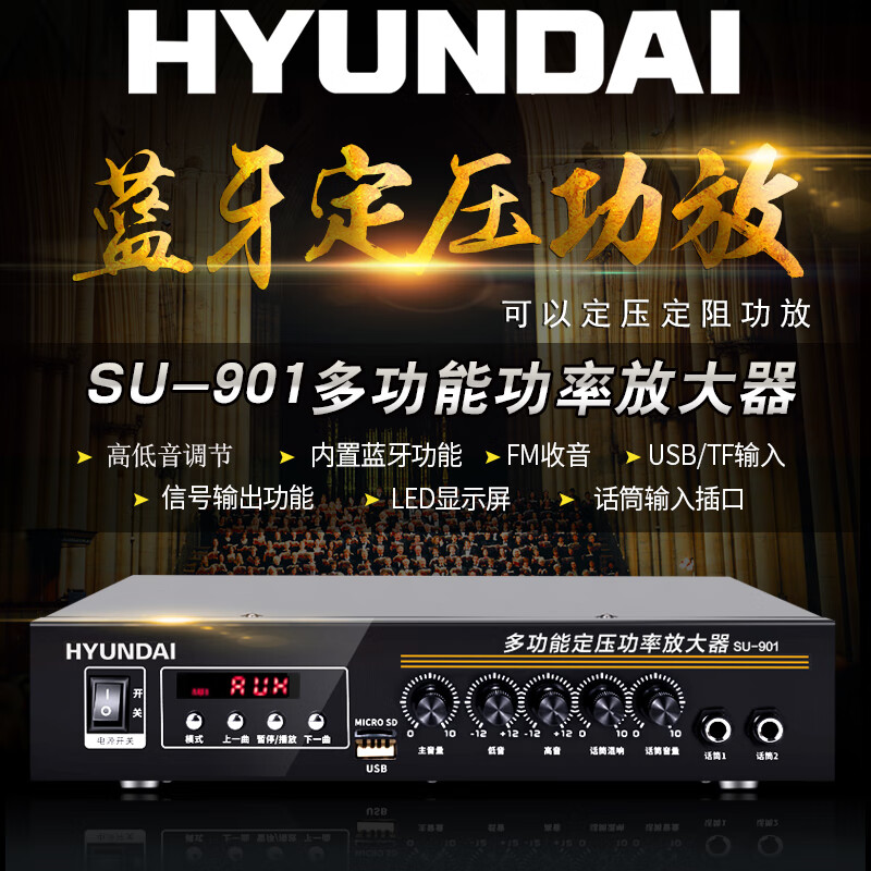 HYUNDAI现代 SU-901定压大功率蓝牙功放机 公共广播吸顶音响喇叭家庭影院组合 黑色价格:155.00元!