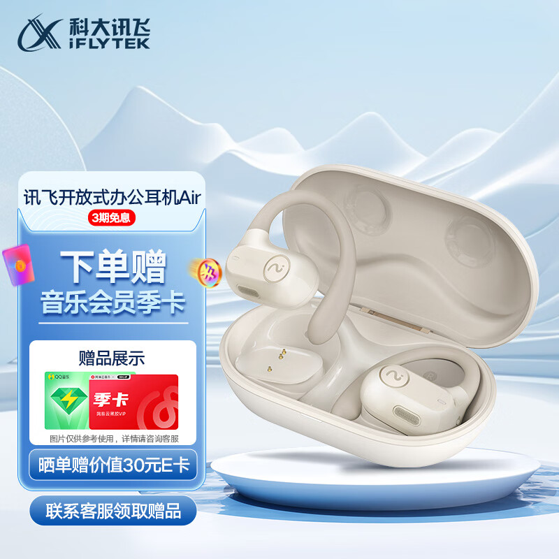科大讯飞开放式办公耳机 Air 白 无线蓝牙耳机 骨传导升级气传导运动录音耳机 同传听译 适用苹果华为价格:959.00元!
