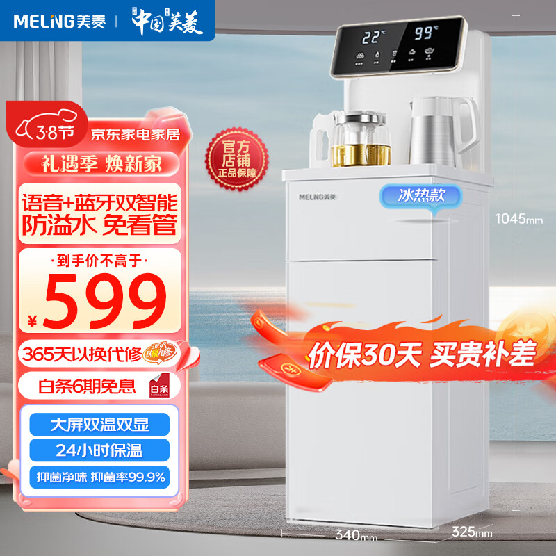 美菱(MeiLing)智能语音茶吧机家用远程遥控立式饮水机升级防溢水壶童锁设计加厚钣金机身多档调温MC-15B ZMD系列价格:522.00元!