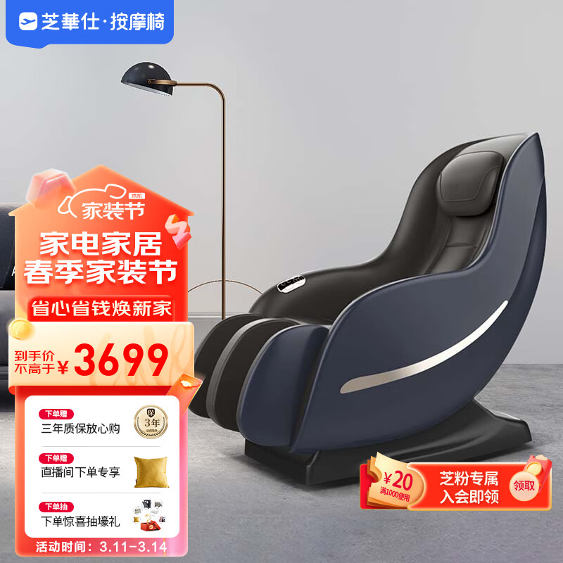 芝华仕(CHEERS)头等舱按摩椅送礼家用全身电动多功能太空舱小型迷你按摩椅 M2050生日礼物 馥郁蓝-现货发货价格:3699.00元!