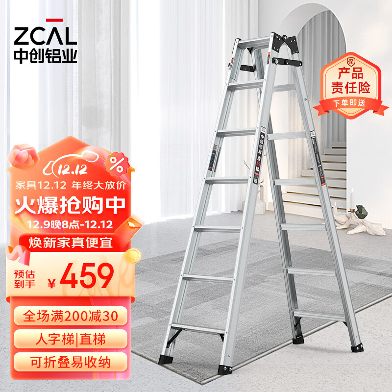 中创中创加厚铝合金七步人字梯/直梯 家用户外/工程梯 可折叠TCL-07价格:519.00元!