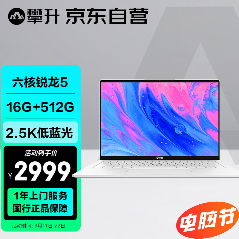 攀升【杨威推荐】国行明星款S2六核R5 14英寸2.5K低蓝光高性能笔记本电脑游戏网课设计办公轻薄本价格:2999.00元!