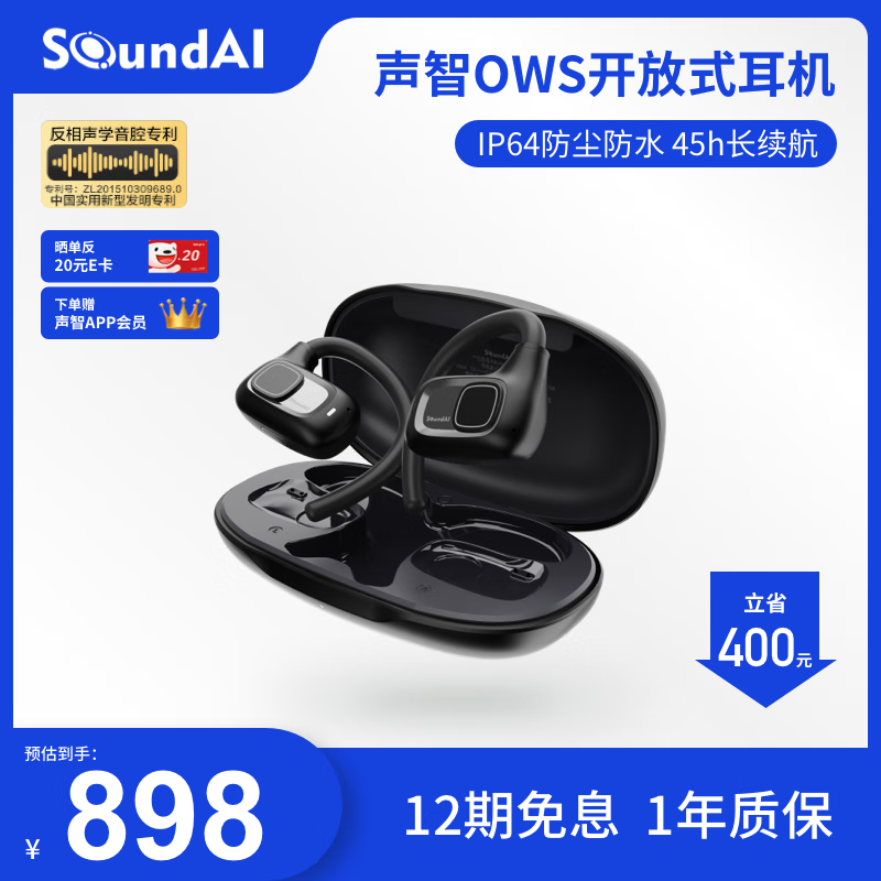 声智云耳开放式运动耳机不入耳运动跑步长续航通话降噪 黑色价格:1298.00元!