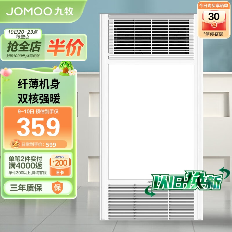 九牧(JOMOO)浴霸集成吊顶多功能取暖器 四合一双核多功能JDE14-21110/2M31-3价格:459.00元!