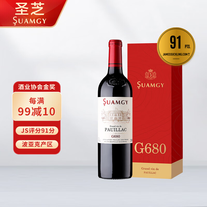 圣芝(Suamgy)G680波亚克AOC 赤霞珠干红葡萄酒 750ml 单瓶装 法国进口红酒价格:588.00元!