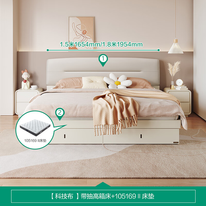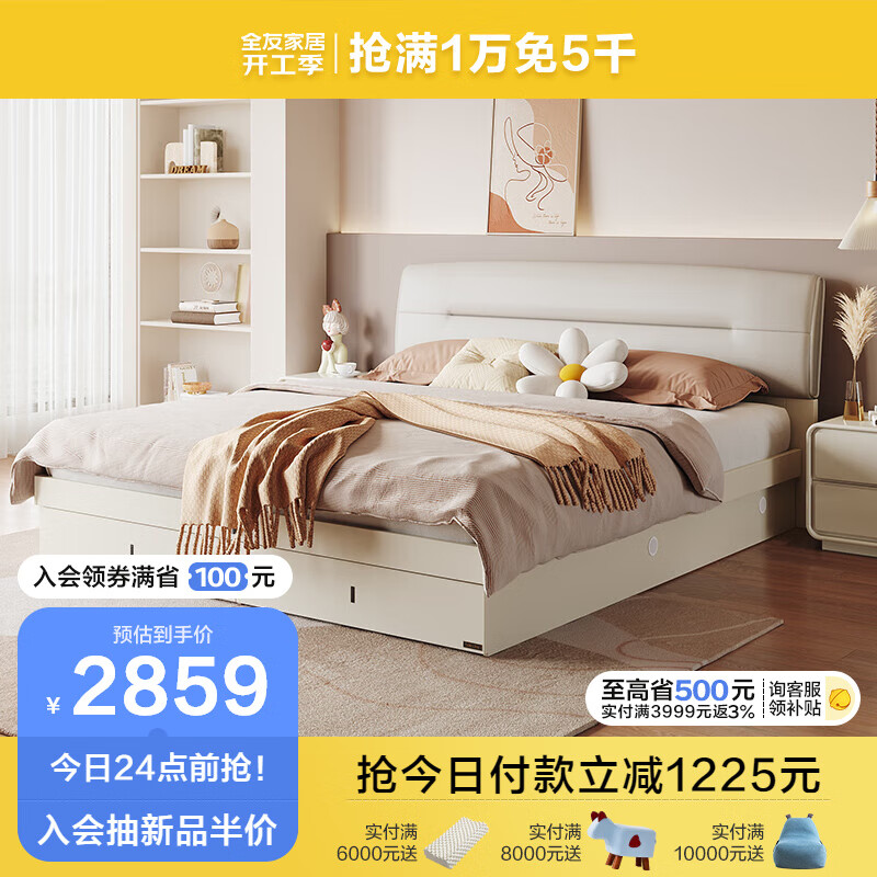 全友家居 床肤感科技布高箱储物床双人床1.8x2米卧室软靠大床DG10001价格:4084.29元!