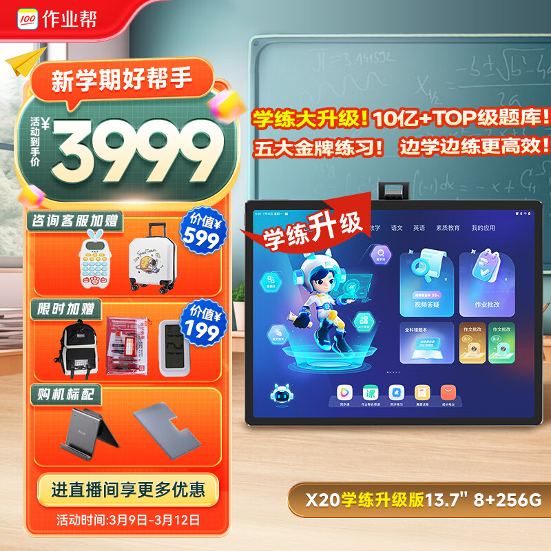 作业帮学习机X20学练升级 小学到高中全科作业辅导学习平板电脑教材同步学家教机 13.7''护眼屏8+256G价格:3999.00元!