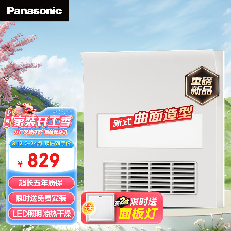 松下(Panasonic)浴霸FV-RB20ZL1风暖浴霸吊顶换气浴室暖风卫生间 小白弧照明浴霸 价格:999.00元!