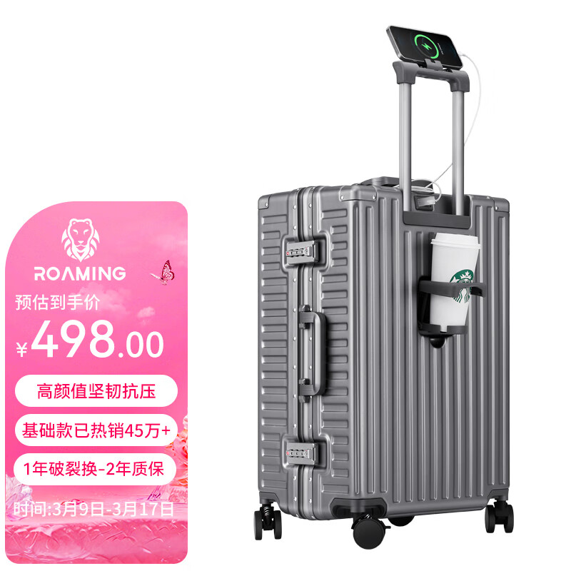 漫游5512行李箱拉杆箱大容量男女旅行箱包密码箱皮箱子24英寸枪色价格:578.00元!