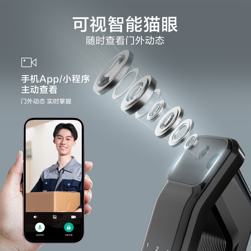 附加功能:试错报警,徘徊抓拍,按门铃抓拍,防试开报警,虚位密码,防撬报警,防劫持报警,电池更换提醒,实时抓拍,可视对讲