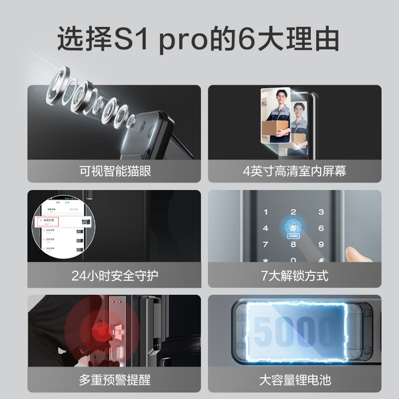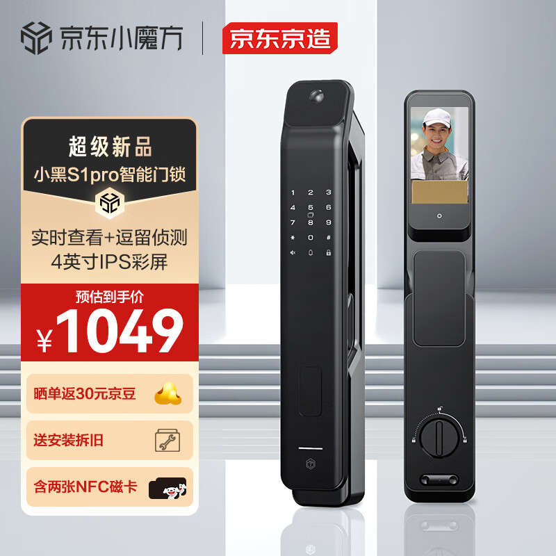 京东京造S1 pro全自动智能门锁 带摄像头可视屏幕猫眼 指纹密码电子锁价格:1149.00元!