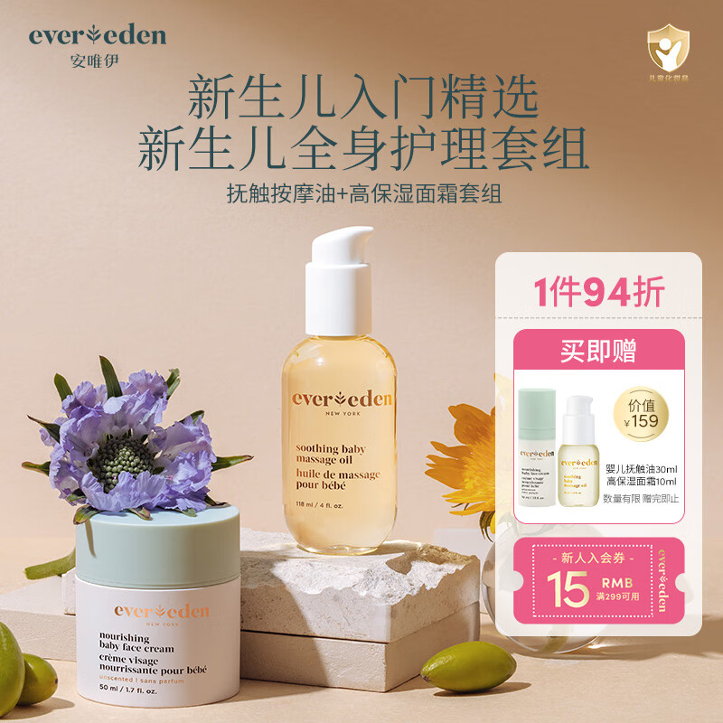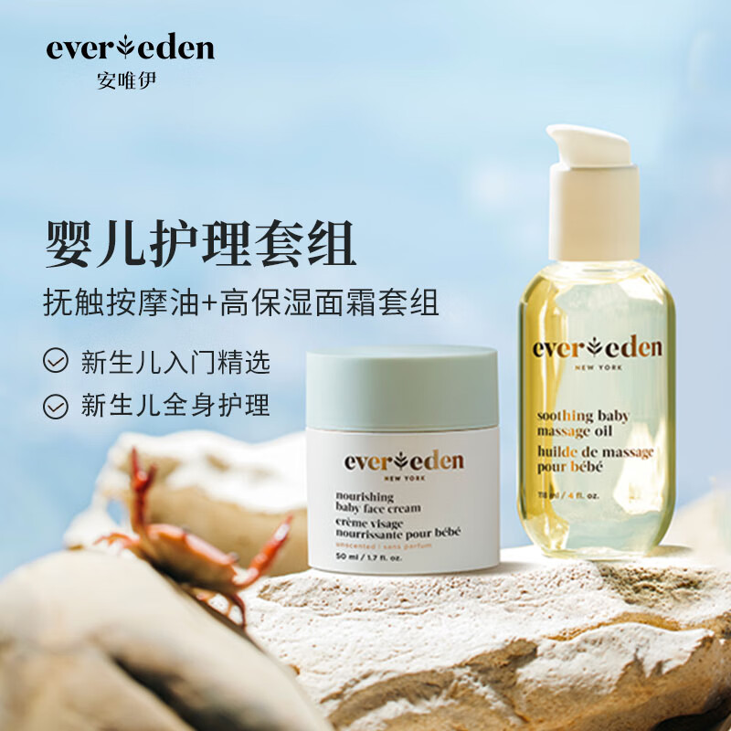 Evereden安唯伊婴儿明星单品组合(抚触按摩油+高保湿面霜)价格:458.00元!