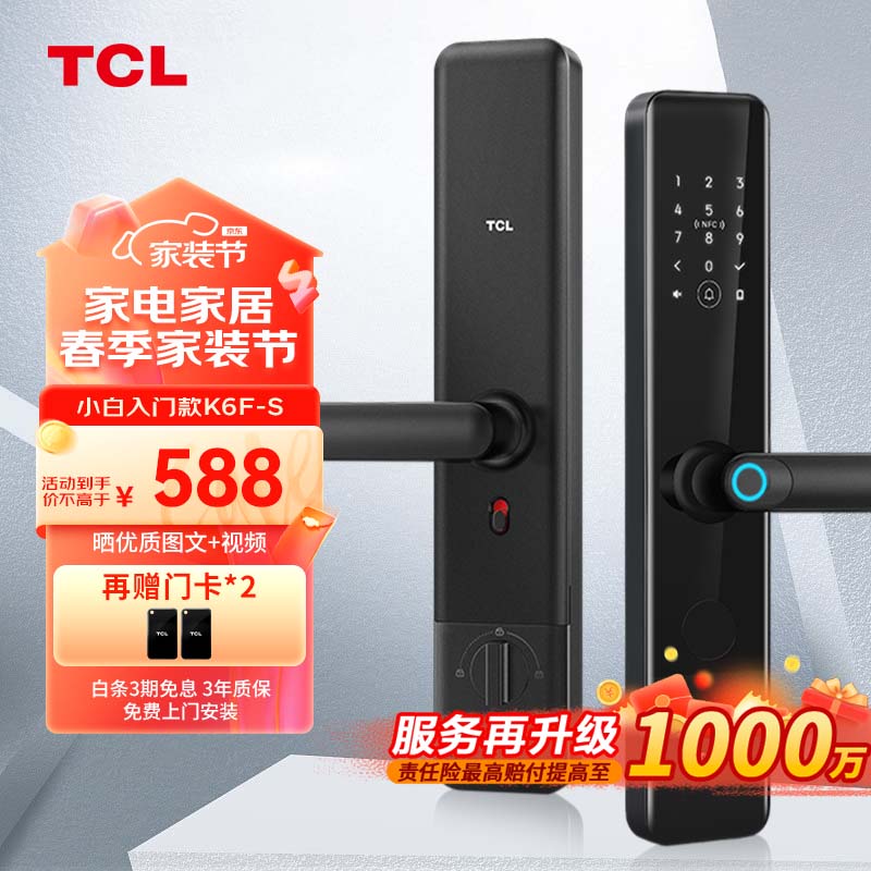 TCL指纹锁智能锁NFC感应密码锁电子锁门锁半自动锁K6F-S升级版价格:587.50元!