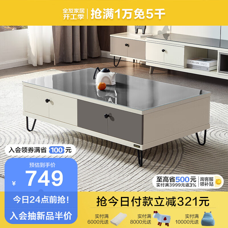 全友家居 茶几现代简约灰白双色地柜钢化玻璃台面茶几客厅家具120797价格:1070.00元!