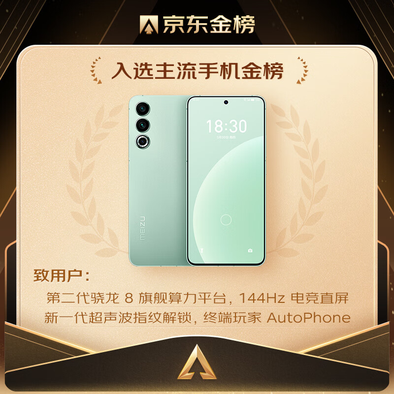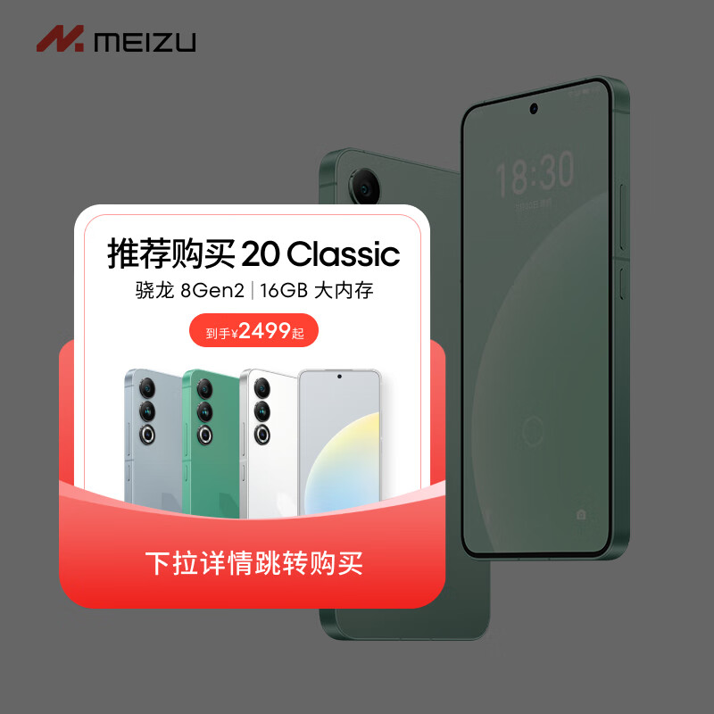 魅族(MEIZU)20 高通骁龙8Gen2 Flyme系统 144Hz电竞直屏 67W快充 5G游戏学生拍照 领克手机域 定胜青 12+256GB价格:2599.00元!