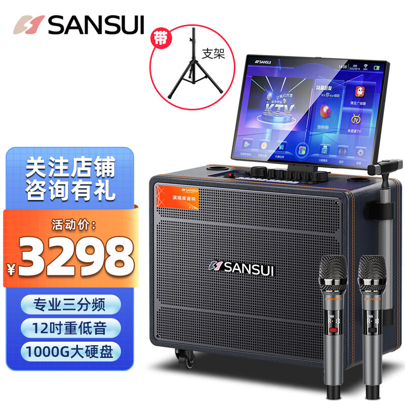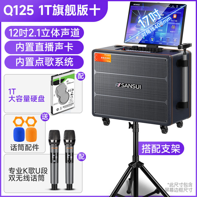 山水(SANSUI)广场舞音响带显示屏 家庭ktv音响套装家用 户外便携视频机移动k歌音箱触摸一体机卡拉ok机Q125价格:3778.00元!