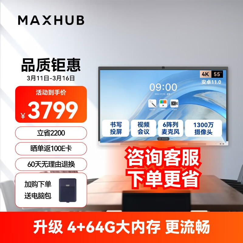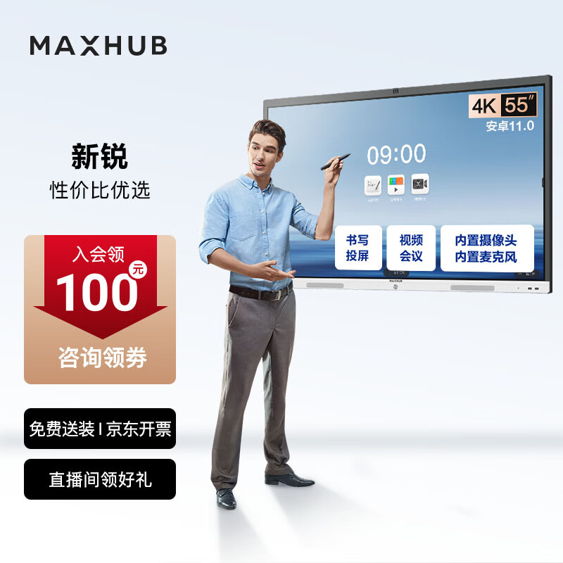 maxhub视频会议平板一体机教学智慧屏摄像头麦克风触摸屏电子白板解决方案V6新锐E55单机价格:3799.00元!