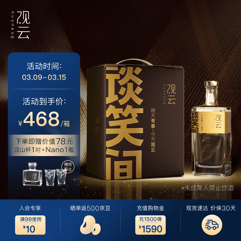 观云金标谈笑间 浓香型白酒 52度500ml*6瓶 整箱装 含3礼袋 自饮送礼价格:468.00元!