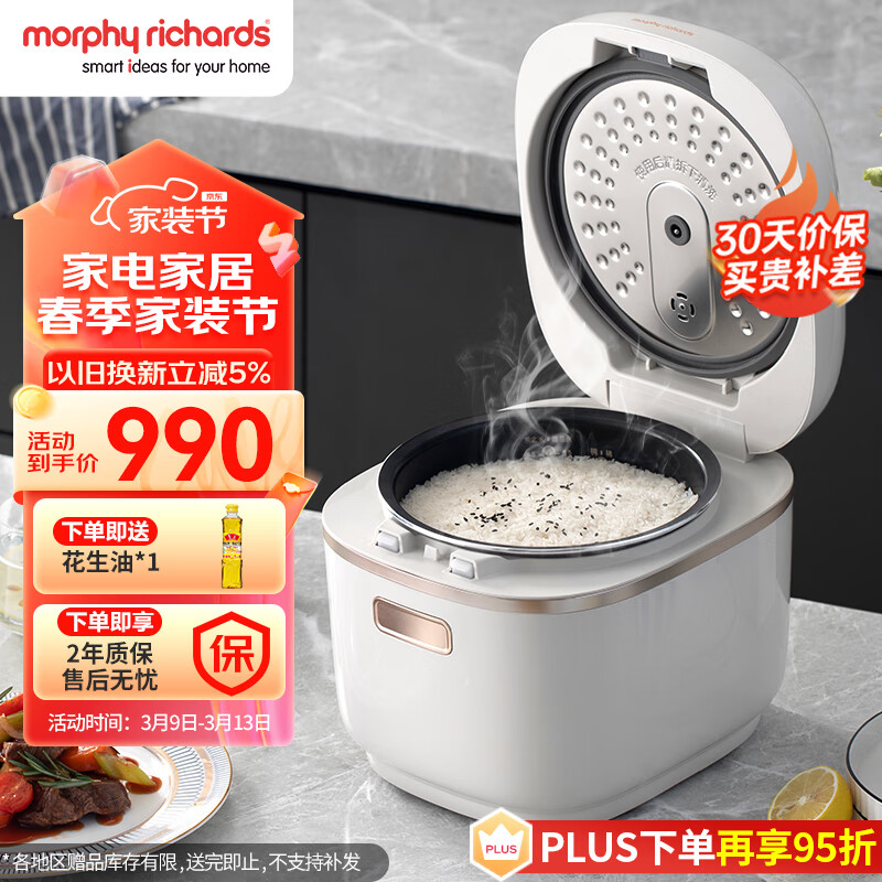 摩飞电器(Morphyrichards)多功能电饭煲电饭锅 家用小型3L双胆煮饭煲汤锅智能和面机面包机MR8500雅典白价格:990.00元!