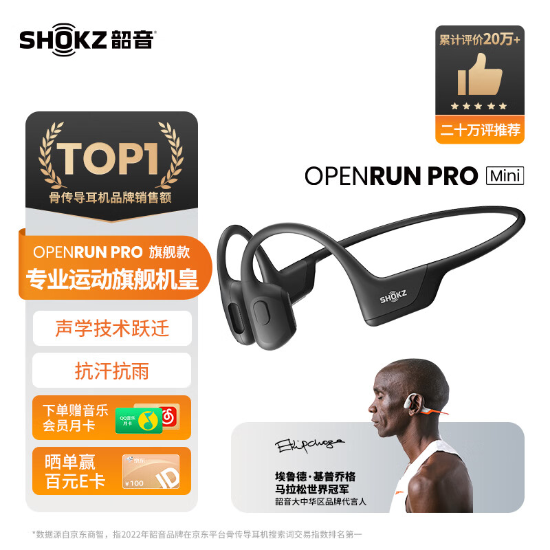 韶音(SHOKZ)OpenRun Pro骨传导蓝牙耳机开放式耳机运动无线耳骨传导耳机跑步骑行不入耳佩戴S810/S811 【适合女士和青少年使用】mini黑价格:1298.00元!
