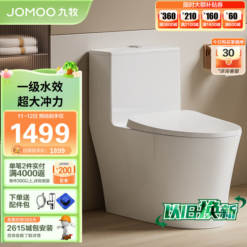 九牧(JOMOO)11350-2-2/41K-1家用大冲力喷射虹吸排污马桶坐便器400坑距价格:1899.00元!