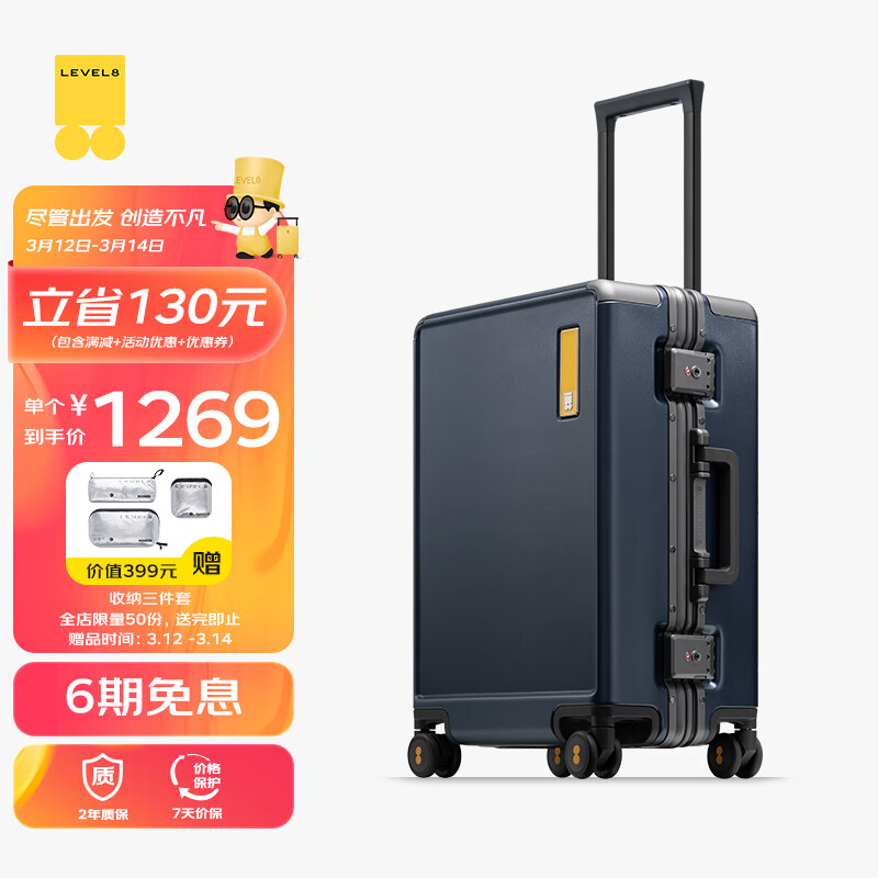 地平线8号(LEVEL8)登机行李箱男女粗铝框旅行箱20英寸拉杆密码箱PC拉杆箱氦系列蓝色价格:1399.00元!