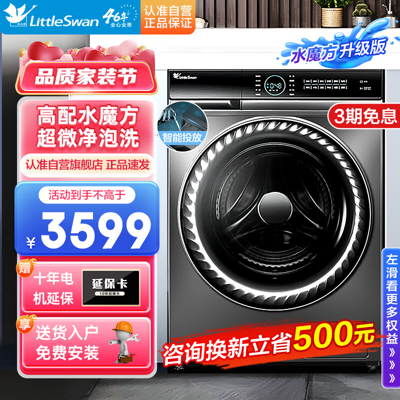 小天鹅(LittleSwan)全自动滚筒洗衣机 超微净泡水魔方 物理去渍 智能投放 超薄10公斤 TG100V88WMUIADY5价格:3599.00元!